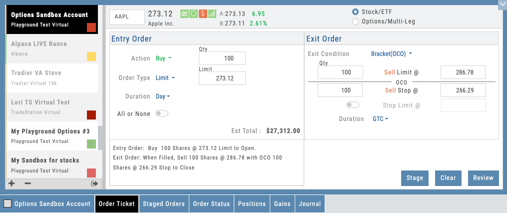• Built-in virtual account with realistic fills, exercise, and assignment